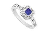 | ✚✚✚ Sapphire and Diamond Engagement Ring : 14K White Gold - 0.50 CT TGW Size 9 A square deep blue sapphire is prong-set in the center & is accented by round diamonds. Rendered in 14K white gold this engagement ring has a total weight (TGW) of 0.50 ct.