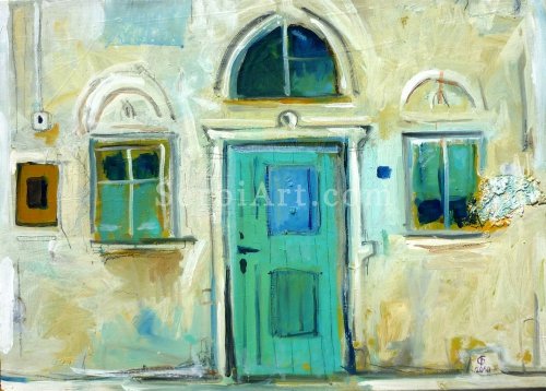 Door 3. Original Mixed Media Art Work By Bojan Savic European Artist created in the year 2010. Tittle: Door 3. Style: Expressionism, Architectural theme. Colors: Beige, White, Blue, Brown, Green Measures: 70cm w x 50cm h (28"w x 20"h) SKU: BS006 About the artist: Education 1994 completed XIV High School in Belgrade 1996 enrolled in the Academy of Applied Arts and Design 2001 graduated from the Academy of Applied Arts and Design at the department: Mural painting Solo exhibitions: 2001 First solo exhibition, Gallery 011, Grocka 2002 Exhibition: Search, Gallery 73, Belgrade 2003 Objects and paintings, Café Gallery ALO ALO ,Belgrade 2006 to 2008 Exhibition at the gallery Tijanic Mill 2007 Fused glass, Manak House, Belgrade 2007 Pantings Birgu, Malta 2008 Malta in Serbia, ?igota Gallery, Zlatibor 2010 Urbanization, Blow up bar Gallery, Belgrade 2011 Mediterranean, The Museum of Herzegovina, Trebinje 2012 Love, Cultural Centre, Cacak 2012 Birds, Med Gallery, Belgrade 2012 Love, Gallery ?igota, Zlatibor Group Exhibitions Participated in numerous group exhibitions in Serbia, Croatia, Malta, Bosnia and Herzegovina.