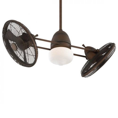 #This gyro ceiling fan has a restoration bronze finish. Features high-performance twin turbofans with adjustable heads. Lifetime motor warranty. Includes 3 1/2" and 6" downrods and a wall mount touch-control system. Dual, double fan design. (UM)