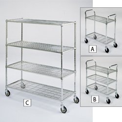 Features4 Shelf Truck 24X72x60"Square posts utilize more steel than round posts for greater strengthShelves adjust in 2" increments5" castersZinc-plated finish is coated with clear non-toxic lacquer RELIUS SOLUTIONS Square-Post Wire Trucks and Carts?