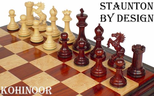 Kohinoor Staunton Chess Set in Red Sandalwood & Boxwood - 5" King