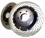These StopTech AeroRotor kits fit stock calipers. Kits include 2-piece directional floating rotors with directional billet aluminum mounting bells. (pre-assembled) 2-piece rotors allow expansion without coning. The parts are up to 8 pounds lighter than stock rotors and push up to 61% more air for better cooling and reduced fade on the track.