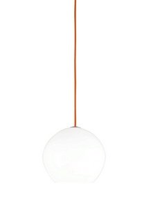 #DESCRIPTION Modern simplicity. A large white orb of handblown glass is suspended from colorful cloth cord for a dramatic statement. Black, satin nickel, and white finish canopy options include clear cable; antique bronze canopy option includes brown cable. The Grande includes a 120 volt, 150 watt medium base G40 lamp or 32 watt GX24Q3base triple tube compact fluorescent lamp (electronic ballast included) and is provided with cloth cord and twelve feet of aircraft cable. The Medium includes a 120 volt, 75 watt medium base A19 lamp or 32 watt GX24Q3base triple tube compact fluorescent lamp (electronic ballast included) and is provided with six feet of field cuttable cable. Incandescent versions are dimmable with standard incandescent dimmer. INSTALLATION This product can mount to either a 4" square electrical box with round plaster ring or an octagon electrical box. DIMMING Incandescent version dimmable with standard incandescent dimmer. Canopy Included: TRUE / Shade Included: TRUE / Canopy Diameter: 4.5 x 0.5
